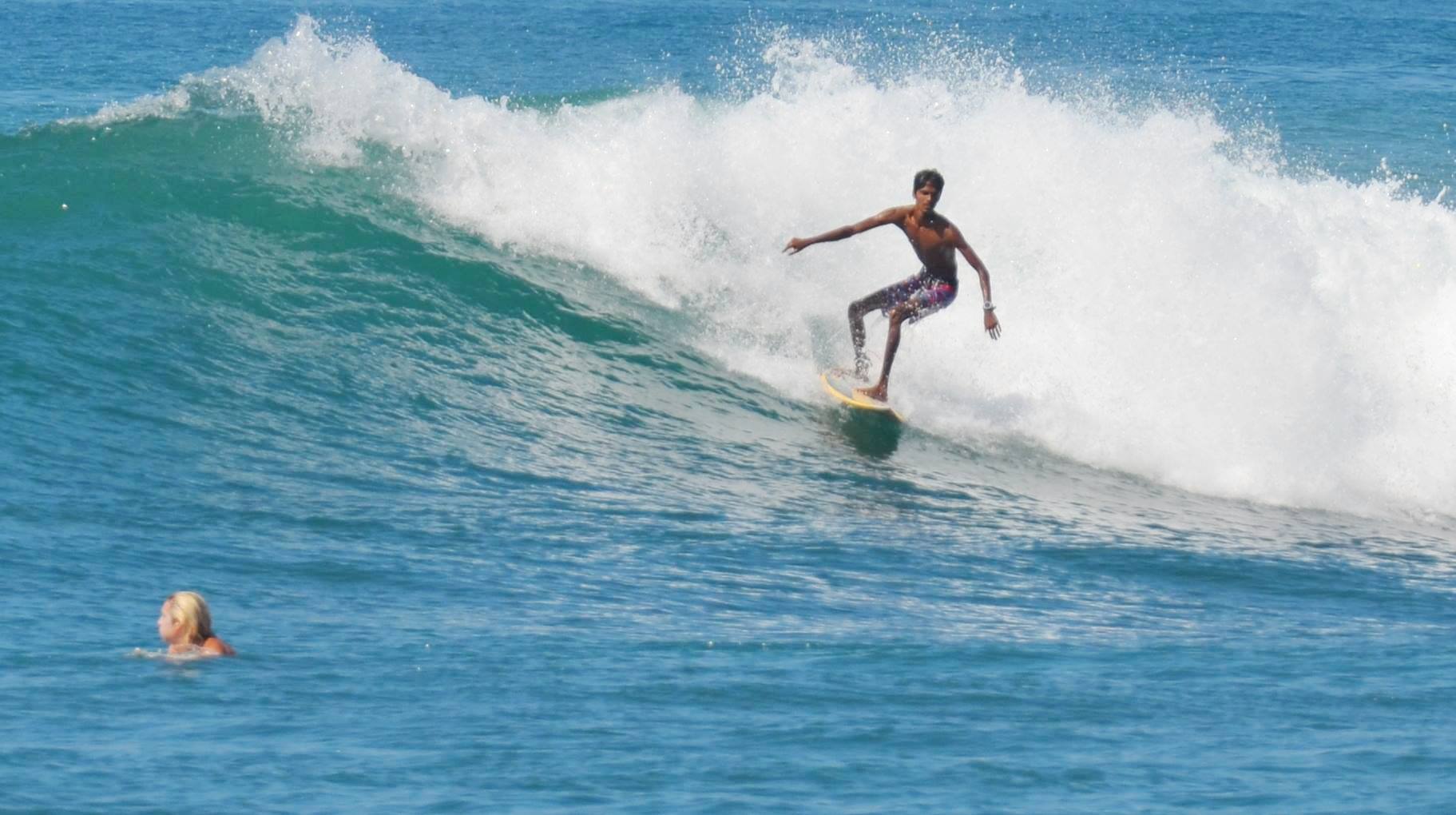 Kavi (Kavindu) was born in Polhena / Madiha and learnt to surf before he could ride a bike.